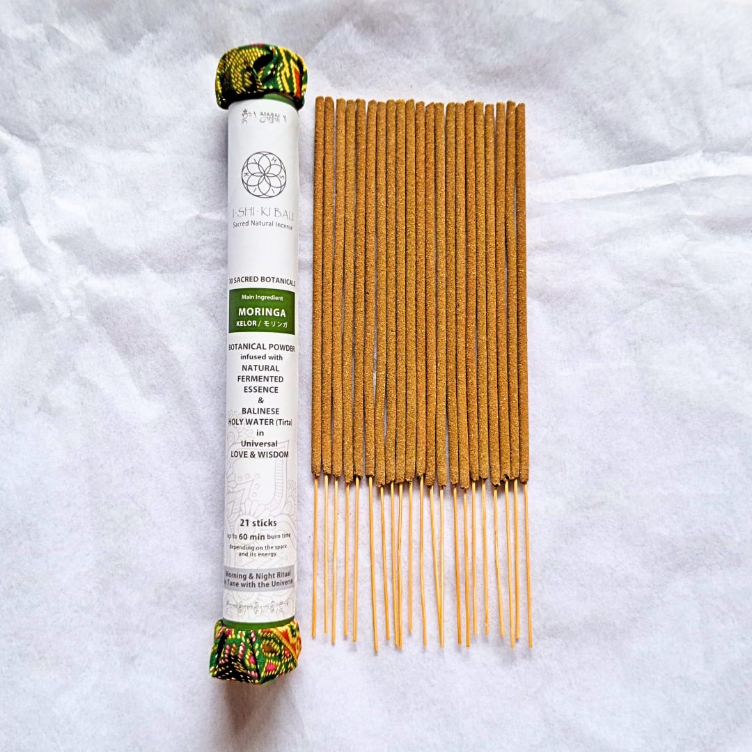 「奇跡の木」とも呼ばれ、葉・花・実・根まですべてが利用できる生命樹。アーユルヴェーダの伝統医学では3,000年以上前から滋養や浄化の薬草として用いられ、バリ島のヒンドゥー文化においても神聖な樹とされる。乾燥地帯でも力強く育ち、人々に食糧や薬を与えるモリンガは「大地からの贈り物」として崇められてきた。