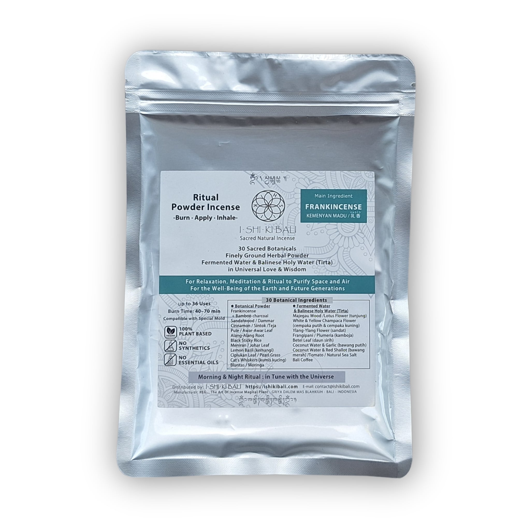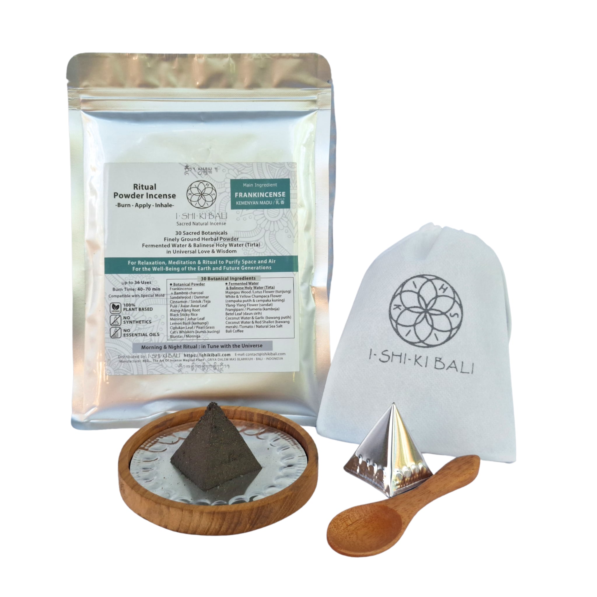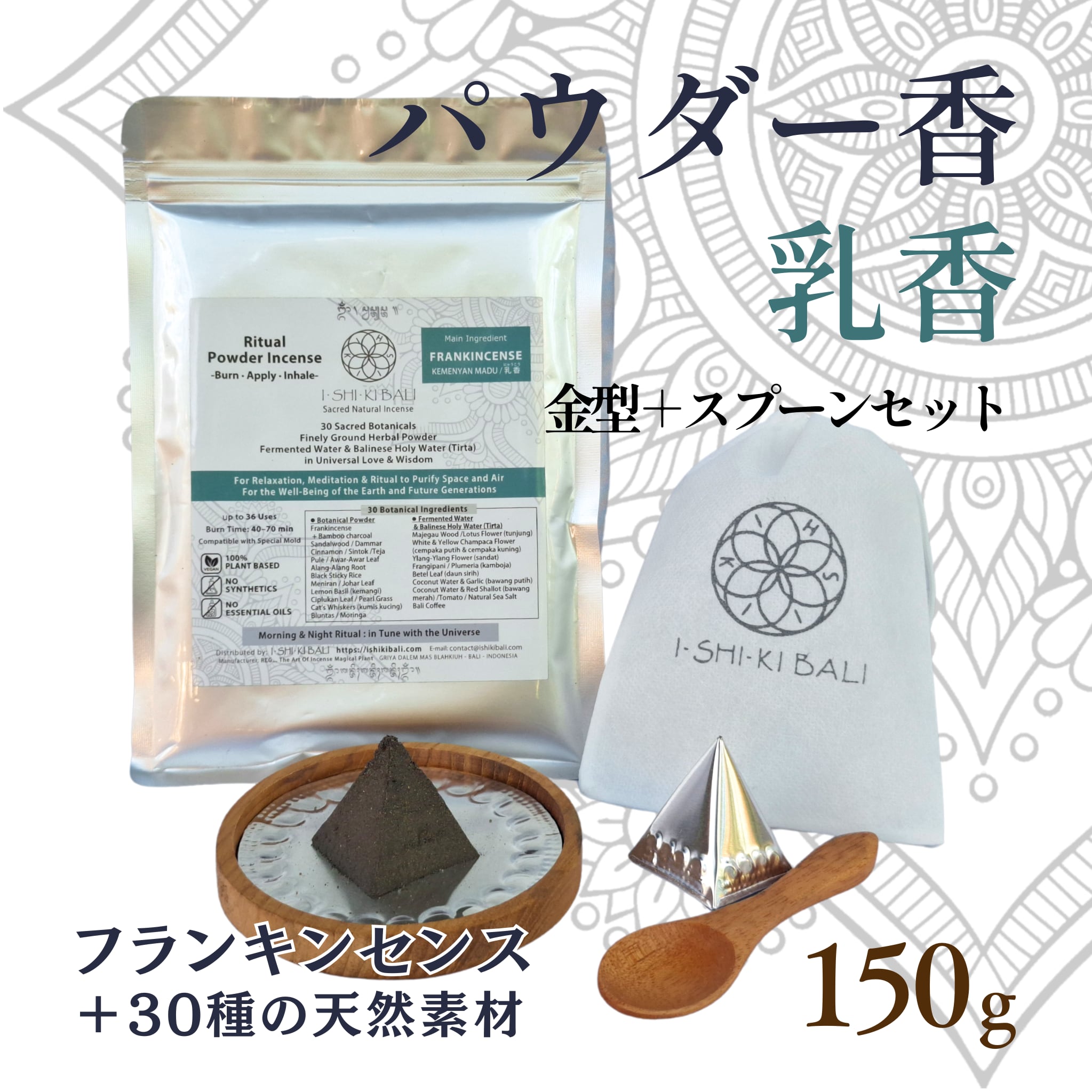予約開始【希少な焚香/36回分】パウダー香/粉香 150g (ピラミッド型で焚く) | フランキンセンス/乳香 | オリジナル金型・スプーン付 | 空間浄化・儀式的な瞑想に | 神聖な天然ハーブのお香を地球・バリ島から | ISHIKI-BALI
