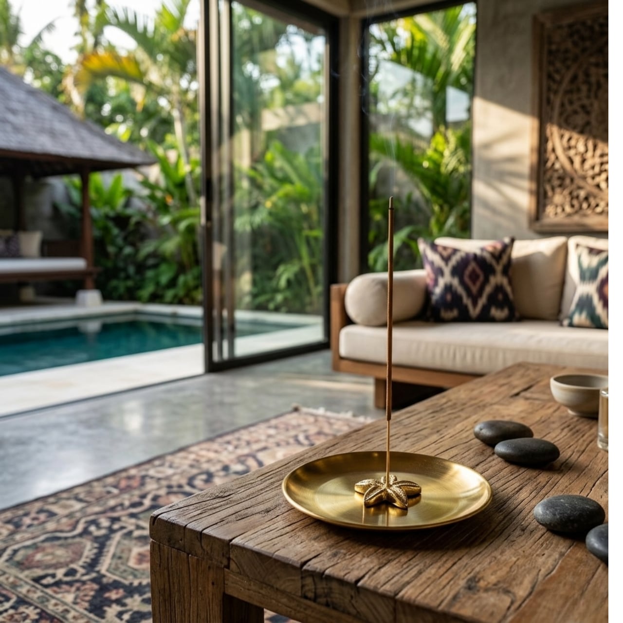 竹芯香(スティック香)を凛と立て、空間にバリの物語を添えてくれます。