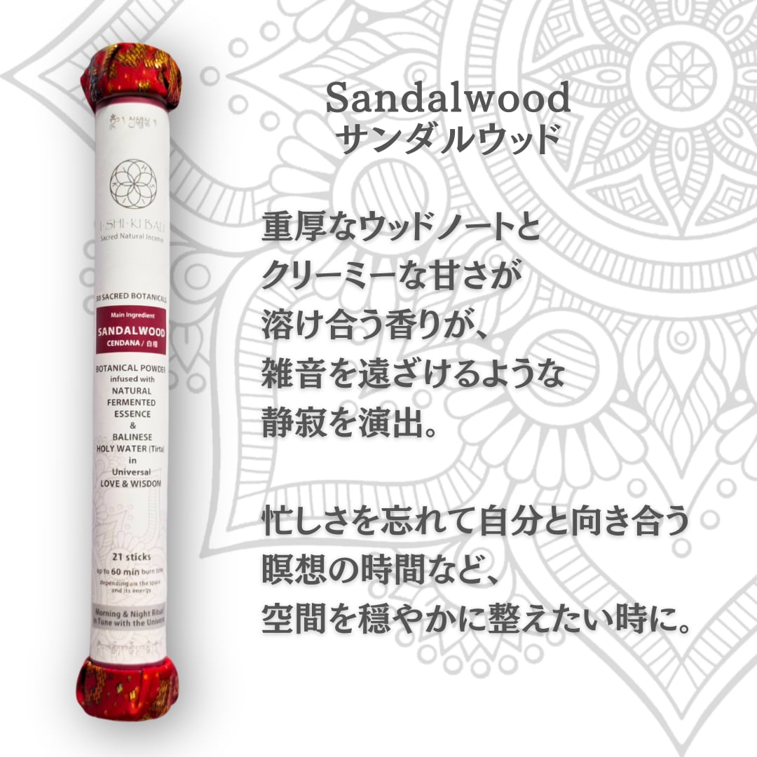【サンダルウッド/白檀】のお香 21本入 | 完全天然100% バリ島発 独自製法 発酵水インセンス | 瞑想・リラックス・浄化に | 神聖な天然ハーブのお香を地球・バリ島から | ISHIKI-BALI