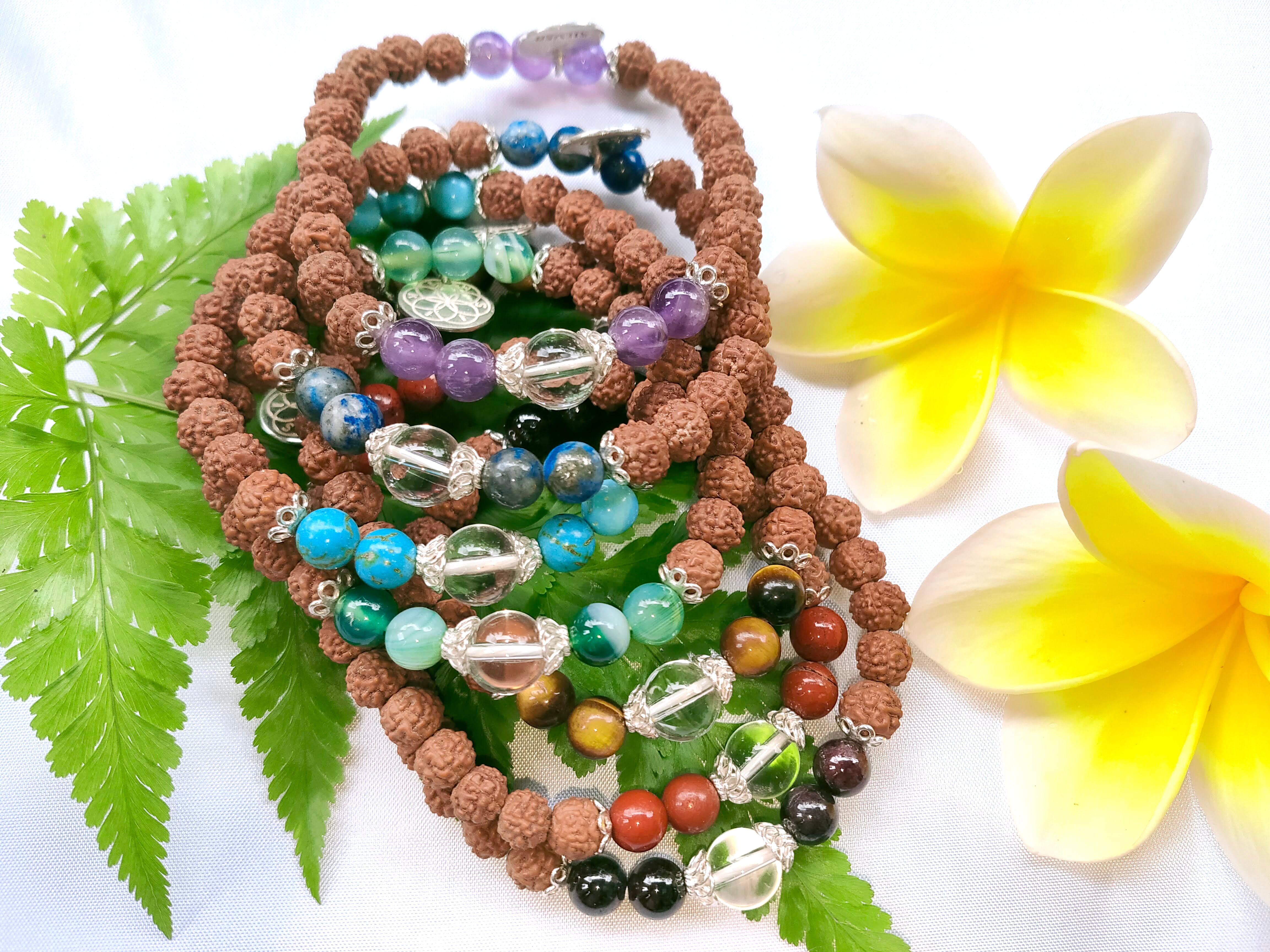 パワーストーンを代表する石で、浄化と調和の石と呼ばれる水晶はどんな天然石とも相性がよく、天然石とルドラクシャとのバランス役としてすべてのブレスレットに採用しています。
