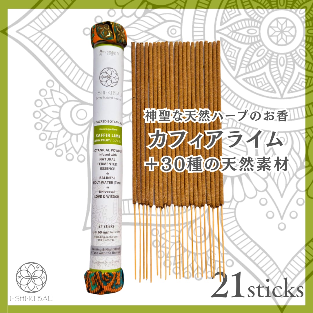 【カフィアライム/こぶみかん】のお香 21本入 | 完全天然100% バリ島発 独自製法 発酵水インセンス | 瞑想・リラックス・浄化に