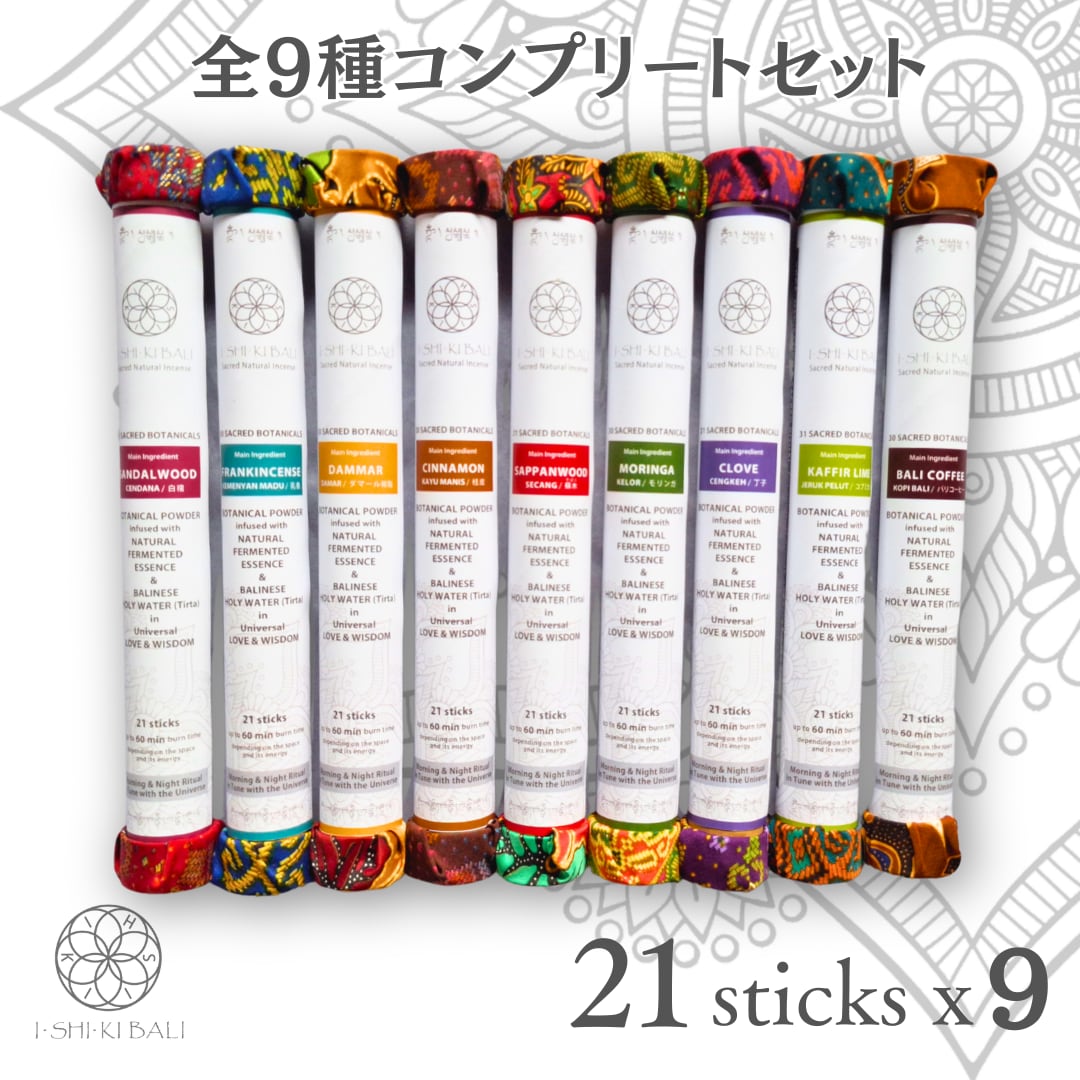 【大容量189本】お香 全9種コンプリートセット (各21本入) | 完全天然100% バリ島発 発酵水インセンス | サンダルウッド・フランキンセンス他 | 本格的な瞑想・浄化に