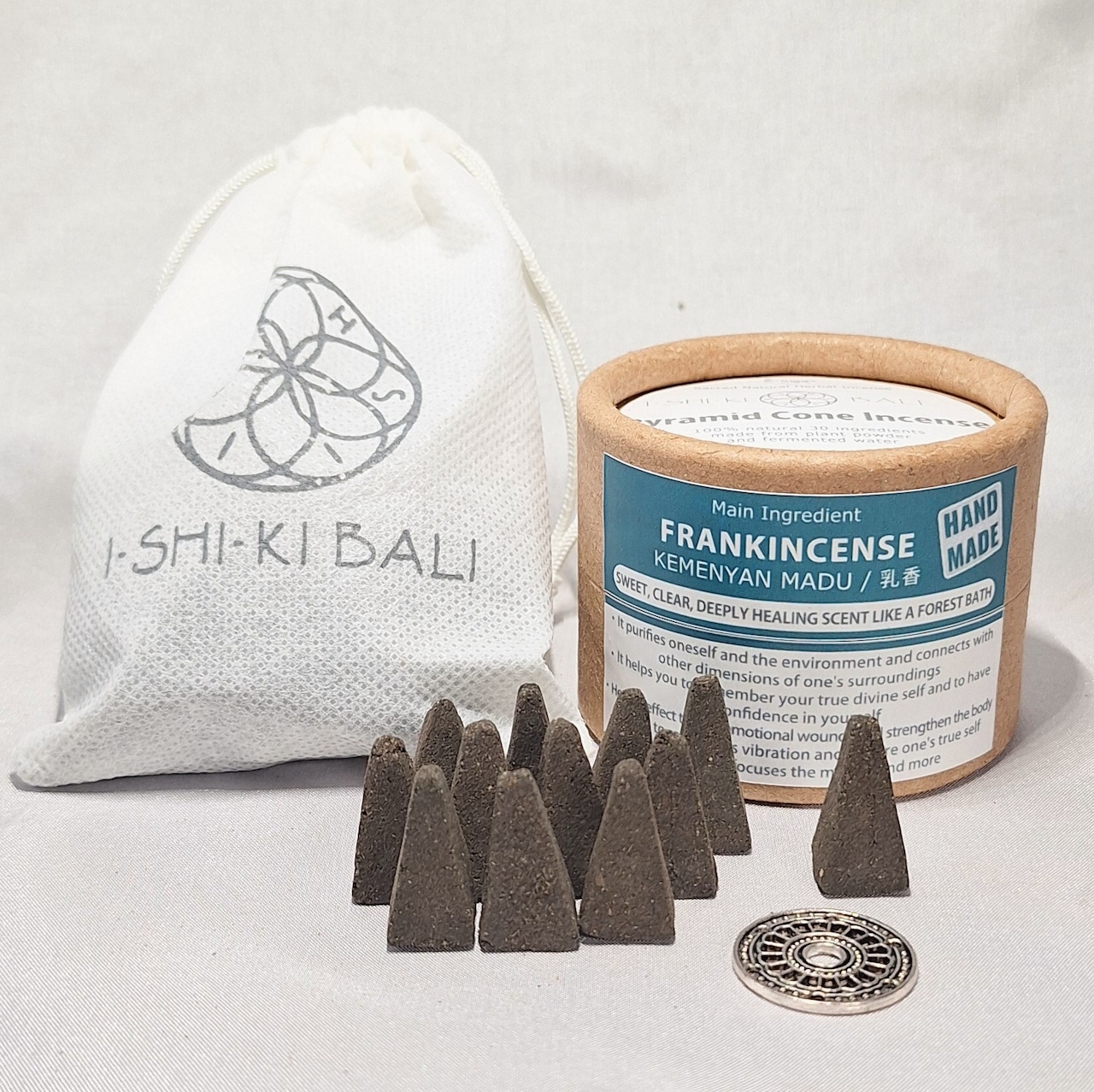【フランキンセンス/乳香】ピラミッドコーン香/専用香立付(12個入)ー神聖な天然ハーブ香ISHIKI-BALI