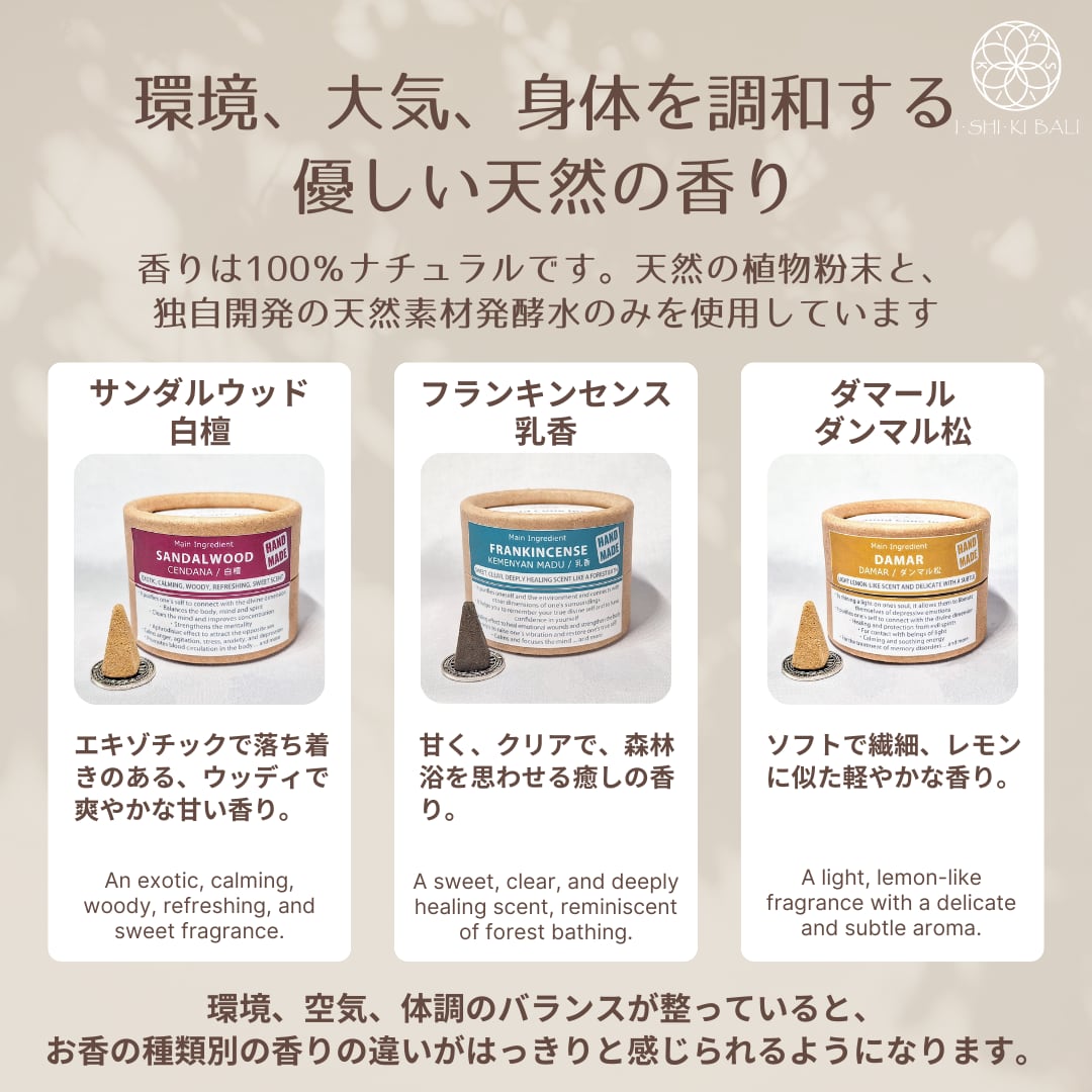 瞑想やヨガ、ヒーリングなどの際に使用することで、集中力を高め、空間をクリアに浄化します。